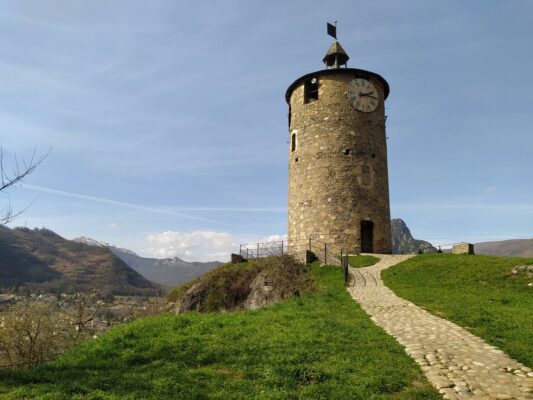 - Der Turm von Castella, der Tarascon, erbaut 1775, übersieht. Er folgt dem Abriss auf Befehl des Provinzingenieurs des Porte de Foix. Die Materialien aus der Zerstörung werden teilweise während des Aufbaus des Castella Round Tower wiederverwendet. Der andere Teil wird zur Wiederherstellung der Porte d'Espagne verwendet. Der Castella -Turm befindet sich am alten Ort der feudalen Schloss.
