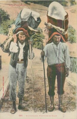 Ceux sont les porteurs de glace, petit métier hors du commun aujourd’hui disparu. Arrivés sur les lieux, munis d’une hache ils découpent un bloc de glace de 25 kilos environs qu’ils enveloppe dans un sac de jute garnis de sciure pour isoler la matière. Le sac reposant sur le dos, les porteurs redescendent le plus vite possible car malgré les précautions, le précieux chargement fond inévitablement durant le transport.